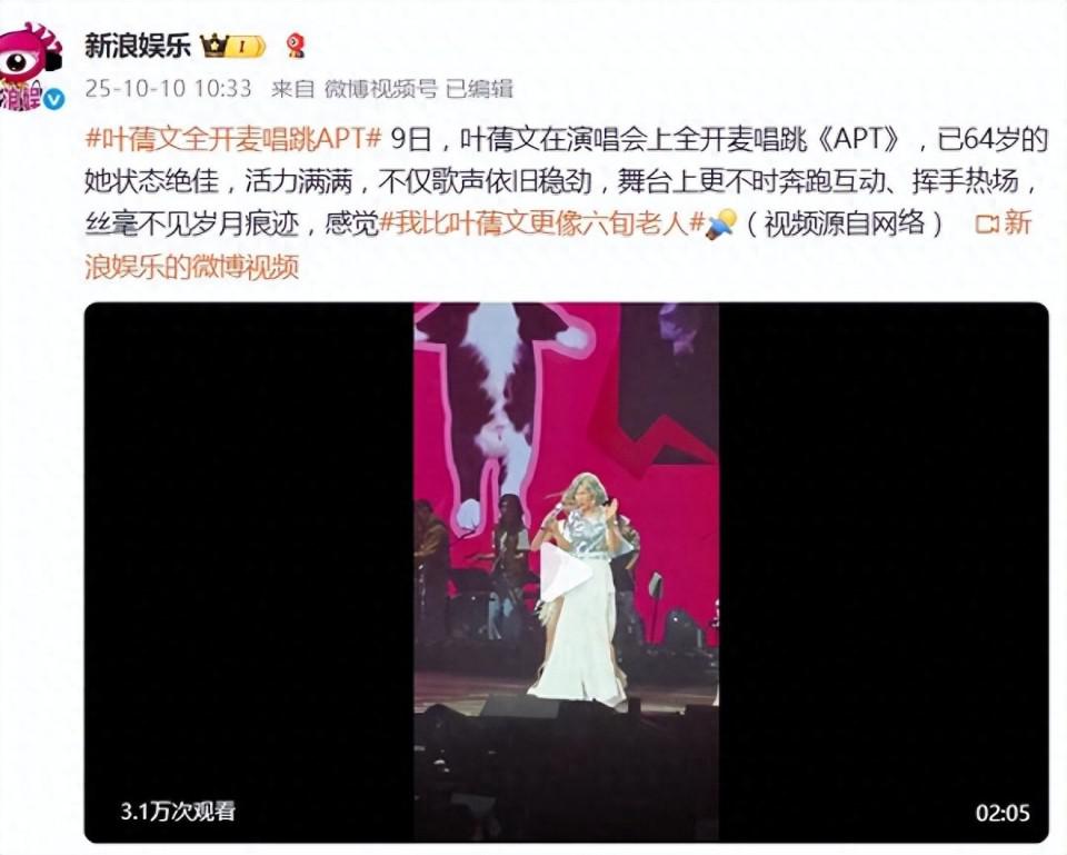 社交媒体上,这场表演正在引发超越娱乐话题的深层讨论。年轻一代在弹幕中刷屏“治好了我的年龄焦虑”,中年群体则感慨“看到优雅老去的另一种可能”。当社会习惯性将“六十耳顺”与含饴弄孙划等号时,叶蒨文用《APT》的每一个节拍重新定义生命的广度——银发可以是阅历淬炼的冠冕,皱纹不妨碍继续做舞台的绝对主宰。